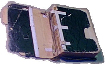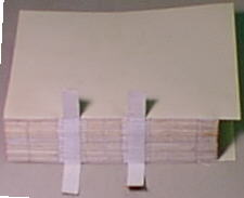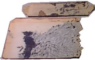 In addition, having no rigid base for the covers makes restoration of the original binding style impractical. The solution is to create a new hard cover binding, - utilising all extant original materials. |  |